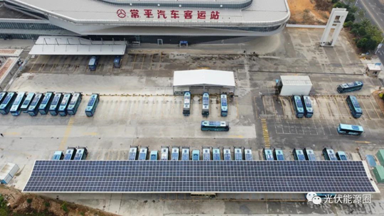 廣東常平汽車站光伏車棚充電站項(xiàng)目光伏裝機(jī)217.56千瓦,年發(fā)電量191914.6度電,節(jié)能減排二氧化碳4783.47噸,安裝19個(gè)充電樁,滿足車站電動大巴車充電需求。