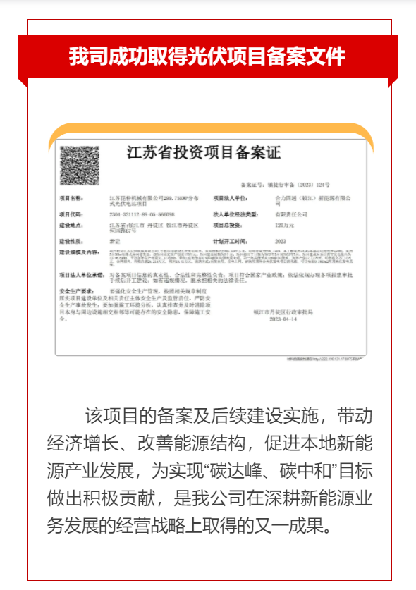 發(fā)展動(dòng)態(tài)丨我司又一投資光伏項(xiàng)目備案!