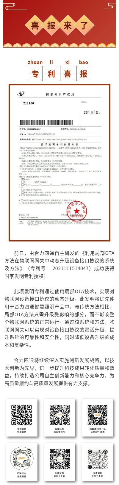喜報!合力四通再獲一項國家發(fā)明專利