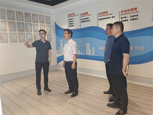 陶偉局長一行在合力四通董事長董斌陪同下,參觀了HelloSmartCity展廳,進一步了解合力四通企業(yè)文化、企業(yè)發(fā)展歷程、最新技術(shù)成果以及企業(yè)未來發(fā)展方向。